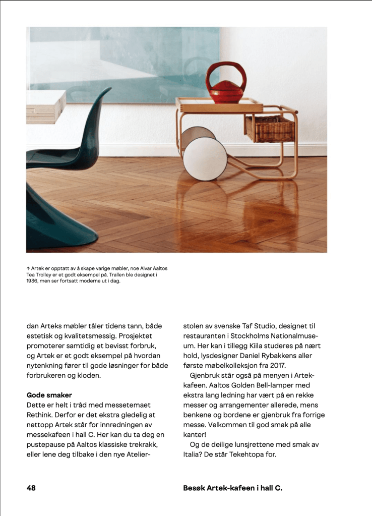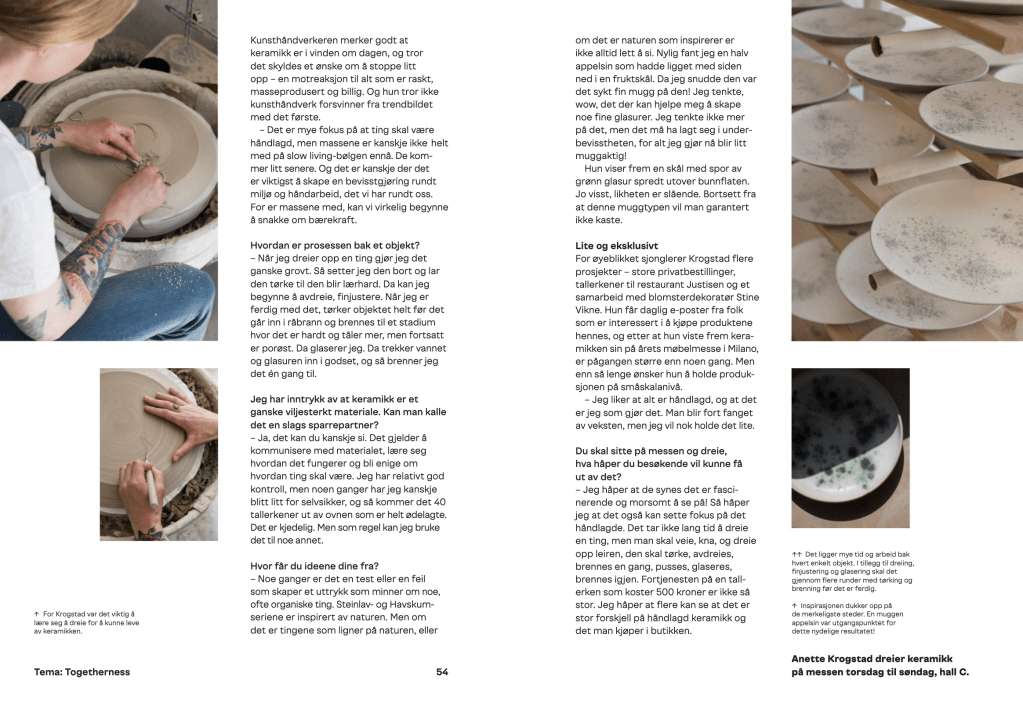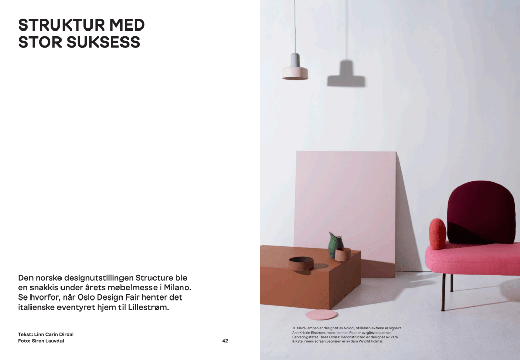 Oslo Design Fair er Norges største innkjøpsmesse og møteplass for design- og interiørbransjen. Fra høsten 2016 til våren 2019 var jeg redaktør for messens eget magasin, i tett samarbeid med messens kreative leder, Grete Sivertsen, og designstudioet Bielke&Yang.