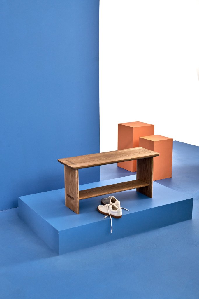 Prototype av skohyllen Nisje, designet av Taran Neckelmann, bygget av Preben Ekern, Ellen Tyldum Skogen, Eskild Ødegård og Eirik Storvik Kristiansen, elever ved Hjerleid Handverkskole. Foto: Jon Marius Nilsson Studio